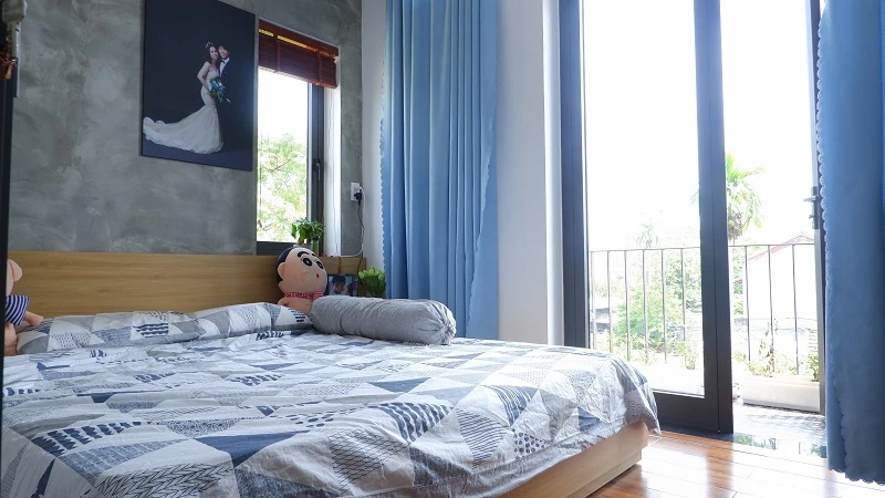 Những vạt nắng xuyên qua cửa kính mang hơi ấm vào phòng ngủ của vợ chồng trẻ, góp phần vẽ nên những ngày yêu thương, hạnh phúc đến từ những điều tự nhiên, giản dị.