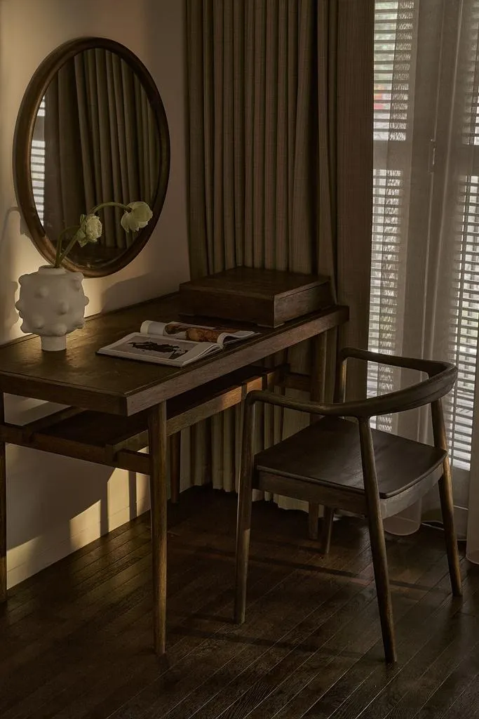 Màu gỗ đậm, ngôn ngữ cửa chớp, những loài cây địa phương như tầm xuân, hồng bạch, hoa nhài và cỏ dại đều là những mong muốn của một gia đình yêu vẻ đẹp truyền thống Việt Nam.