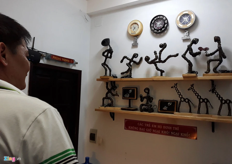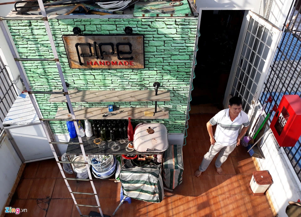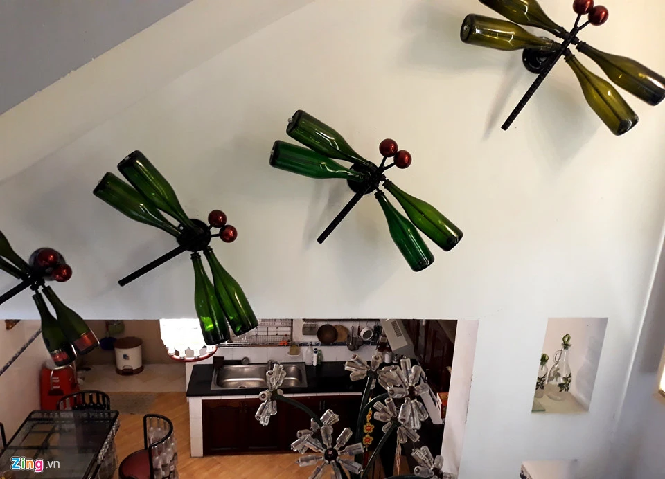 “Ngày xưa tôi thích sưu tầm các chai rượu mẫu, sau đó tình cờ thấy bạn bè vứt nhiều chai thủy tinh nên xin về nhà. Lúc rảnh thì mày mò làm vài thứ đồ nhỏ để trưng bày trong nhà, rồi tự nhiên mê tái chế lúc nào không biết” - ông Bình chia sẻ.