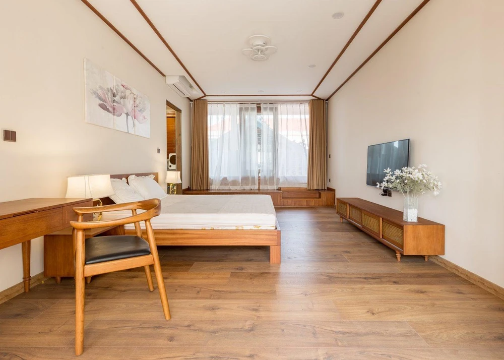 Phòng ngủ thiết kế theo phong cách hiện đại với tông màu trung tính.
