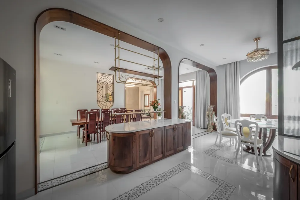 Các bức tường ngăn giữa các ngôi nhà cũ được dỡ bỏ, mang lại các không gian rộng lớn, liên thông, đáp ứng đầy đủ cho nhu cầu sử dụng lâu dài của gia chủ.