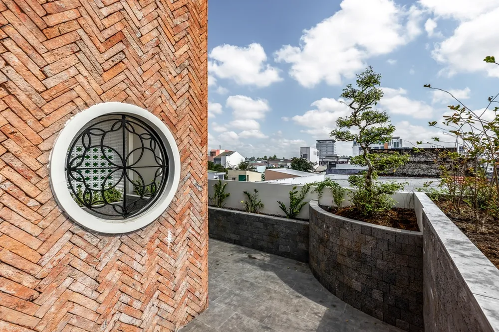 Bên cạnh đó, màu gạch đỏ cùng kiểu lát gạch ziczac giúp cho ngôi nhà có thể được nhận diện từ xa và tạo ra một cá tính rất riêng cho ngôi nhà.