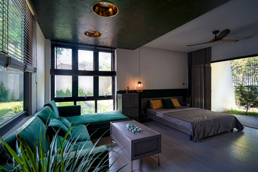 Phòng ngủ master có không gian gần gũi với thiên nhiên.