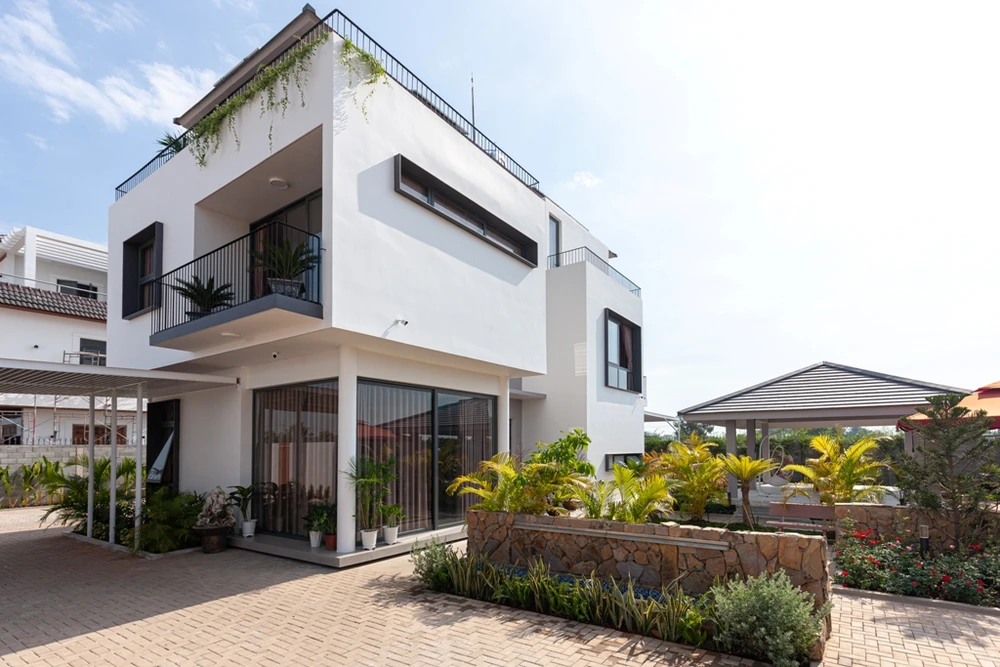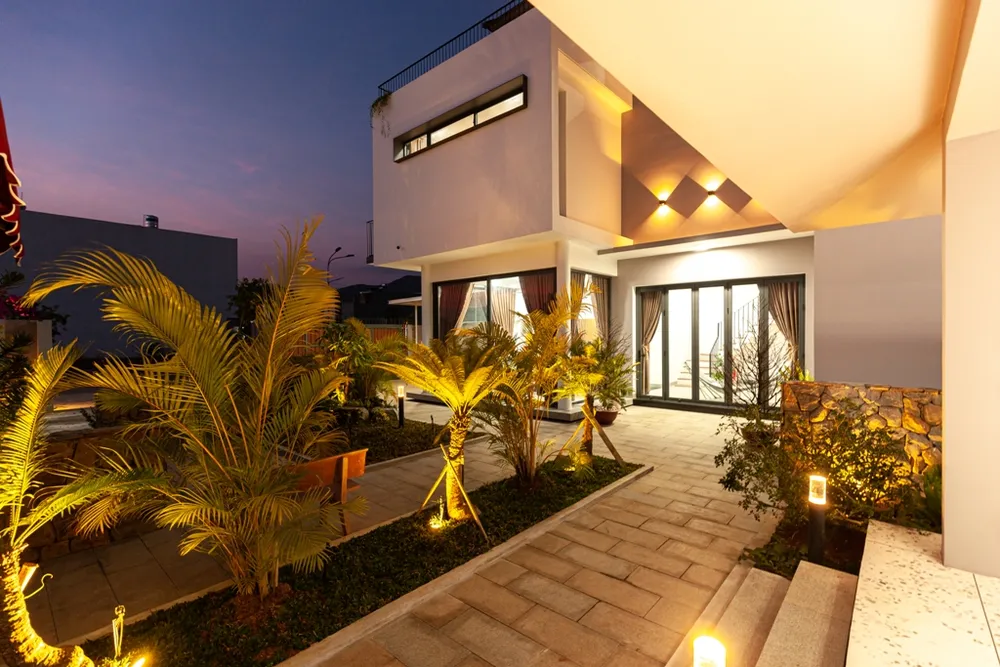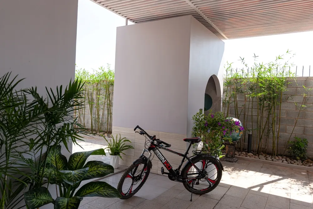 Không gian sống trong khuôn viên nhà được bao quanh bởi cây xanh.