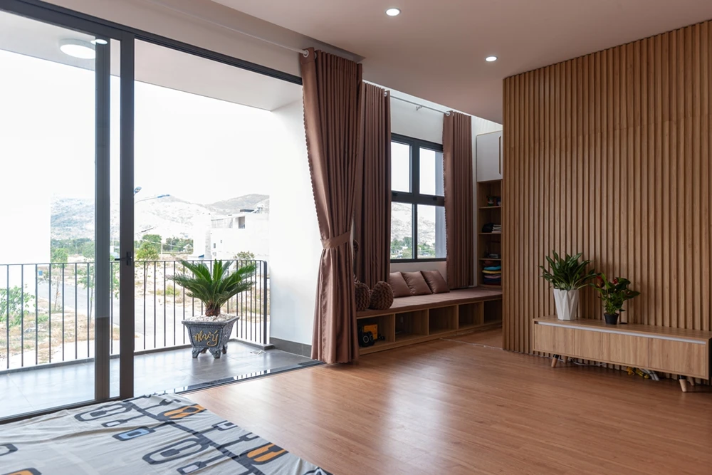 Tầng hai là phòng ngủ bố mẹ và phòng của hai cậu con trai.