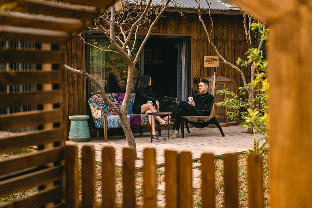 Nhóm thiết kế Combo Home thiết kế một cái sàn lớn trước hiên nhà giúp ngôi nhà vẫn riêng tư, an toàn và mọi người ngồi uống trà, ngoài sân.