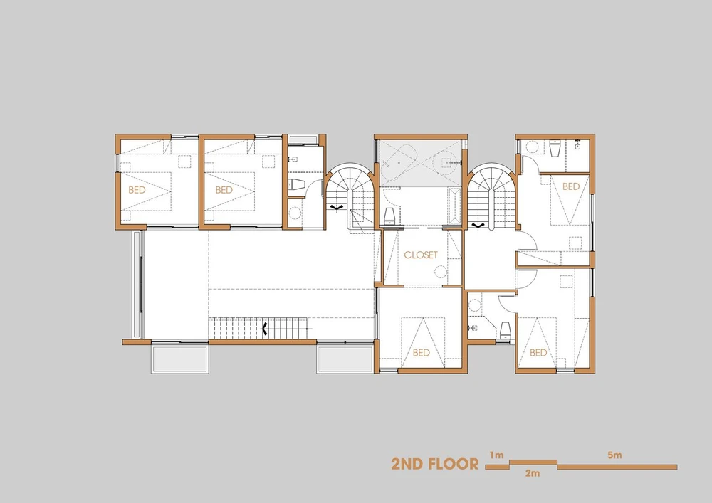 Kiến trúc sư đã tạo ra một sảnh lớn giữa các phòng ngủ để mọi người có thể kết nối với nhau. |