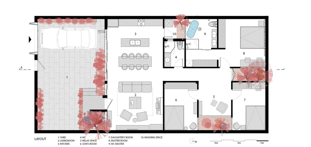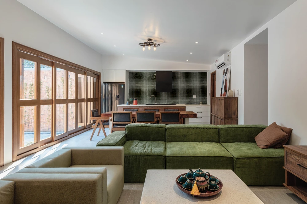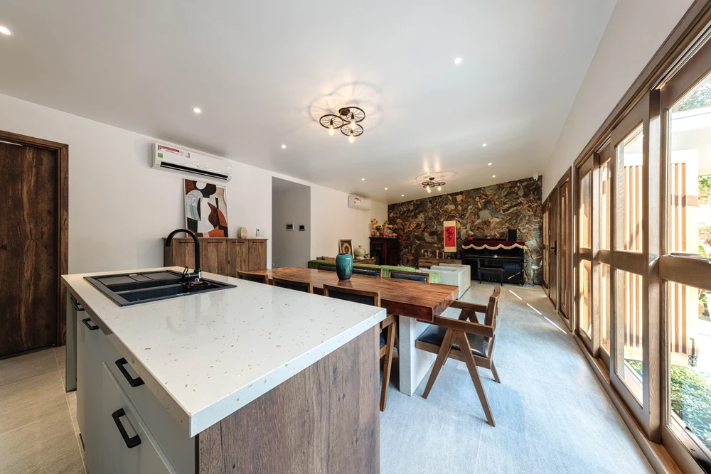 Tất cả các không gian trong nhà đều có khoảng “thở” giao thoa với thiên nhiên, cây xanh và không khí trong lành.