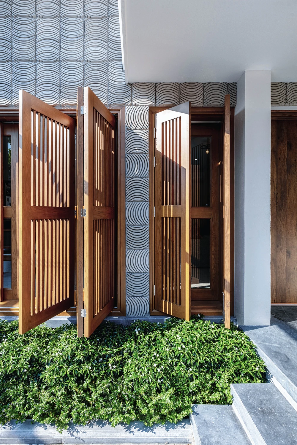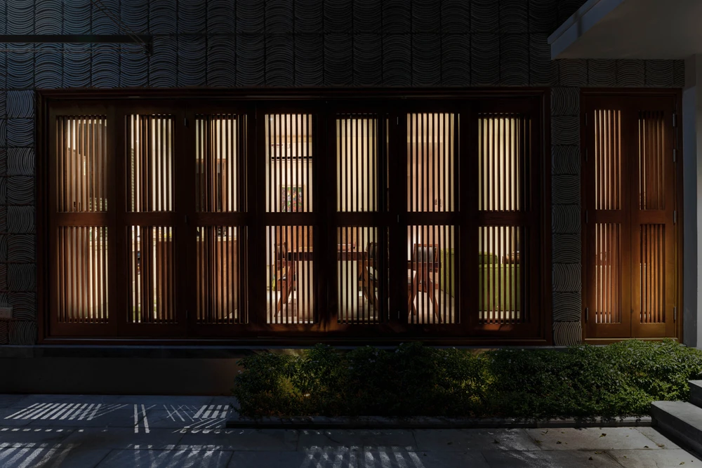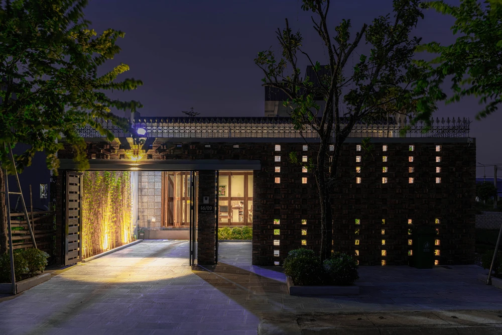 Sau quá trình nghiên cứu về sự đóng - mở, giải pháp được đưa ra là một mặt tiền vừa rỗng vừa đặc. Các viên gạch xây tường được “rút bớt” có chủ ý tạo nên các lỗ rỗng.