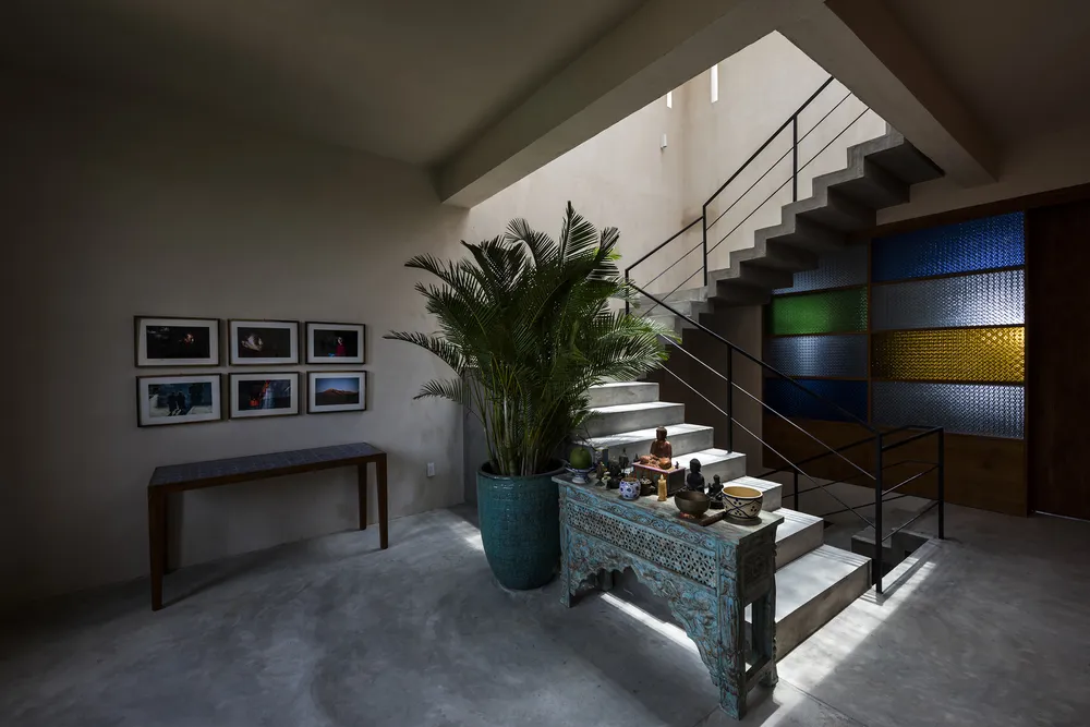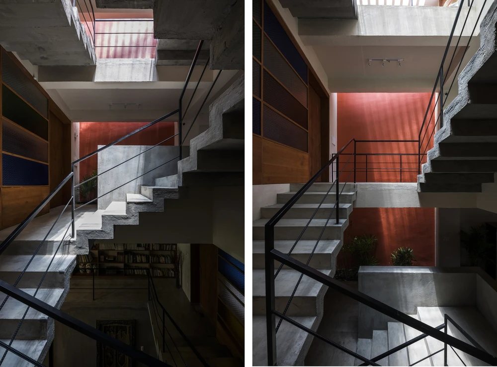 Kiến trúc sư không dùng sơn nước như những ngôi nhà phổ biến hiện nay, ngôi nhà này để lộ ra vật liệu là bê tông sơn thô.