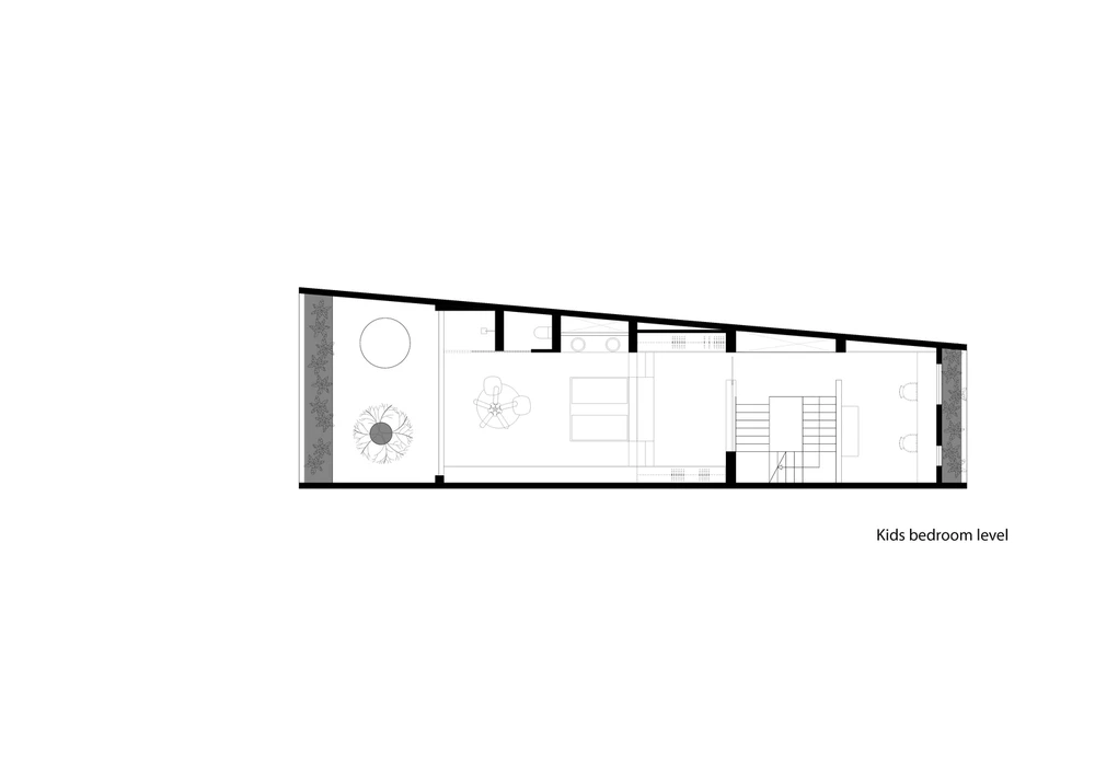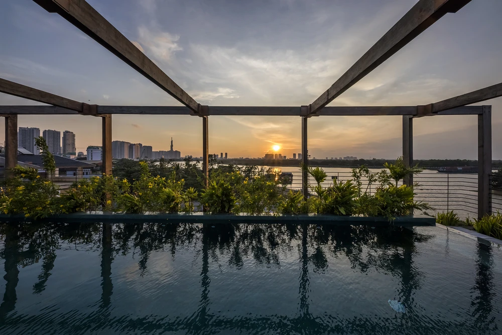 Tropical Suburb Town House là mẫu nhà ống có diện tích 7m x 25m. Với lô đất hình thang có hai mặt giáp đường và hai mặt tiền nhìn ra sông Sài Gòn, ngôi nhà được thiết kế có tầm nhìn quan sát từ mọi phía.