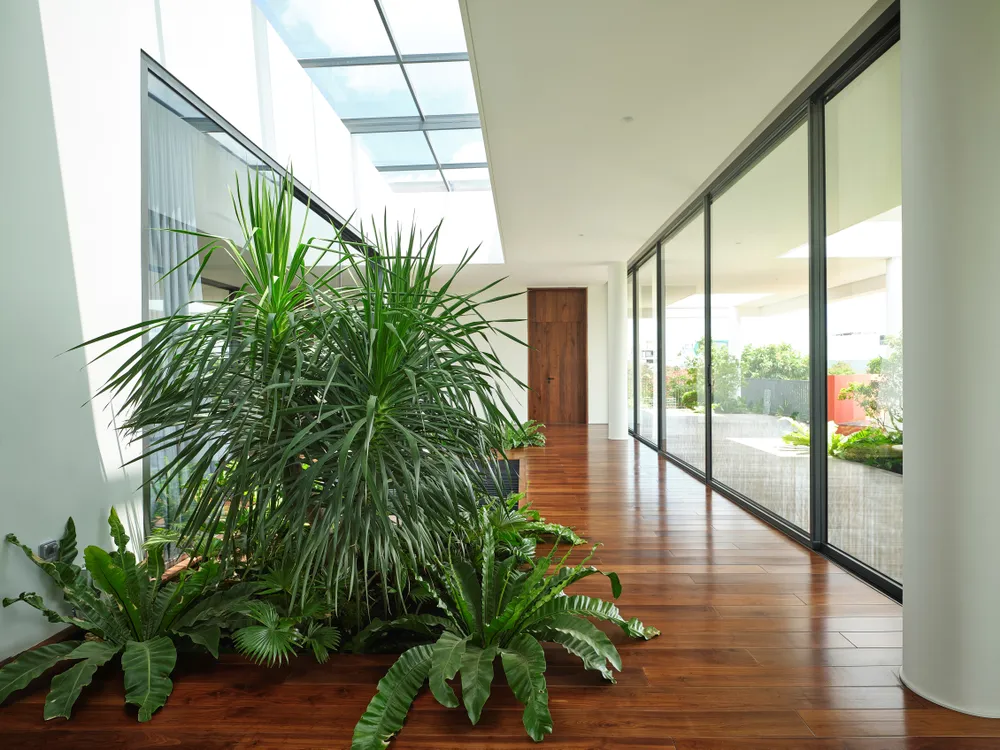 Theo kiến trúc sư Phạm Thị Mỹ An, mảng xanh là yếu tố kết nối không gian. Mảng xanh là một biện pháp hiệu quả để che lấp đi những không gian khuyết thiếu của ngôi nhà. Ngoài ra còn che đi những khối công năng để tôn lên đường nét duyên dáng, hài hoà cho tổng thể công trình.