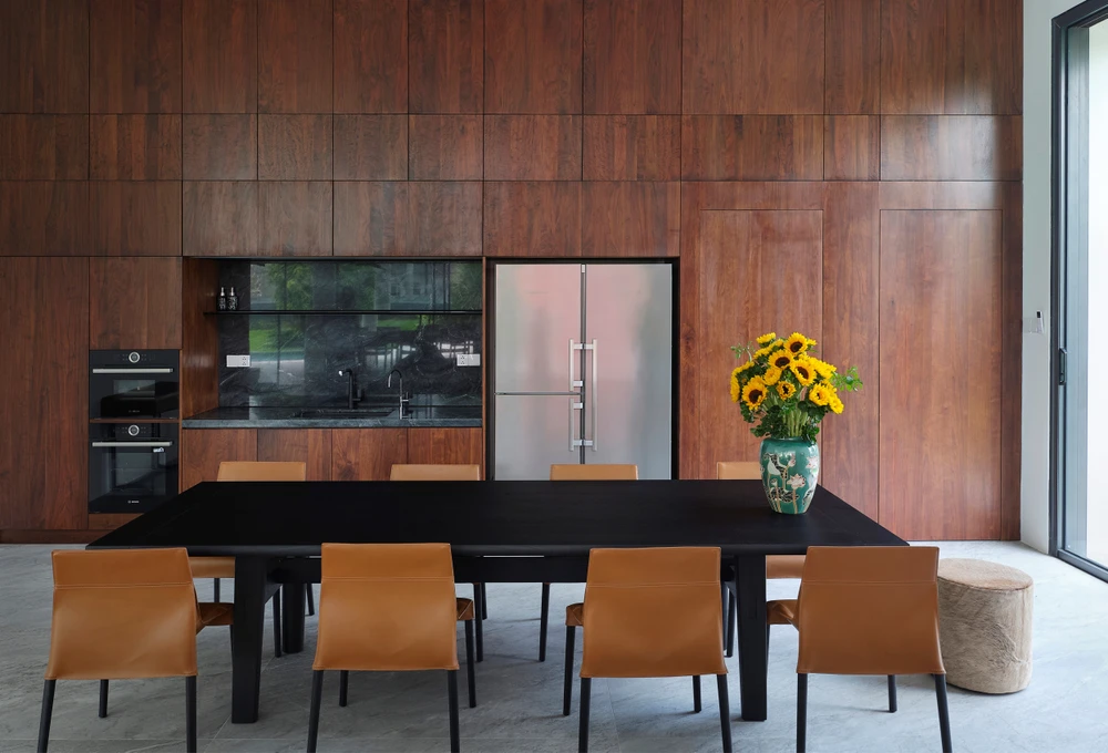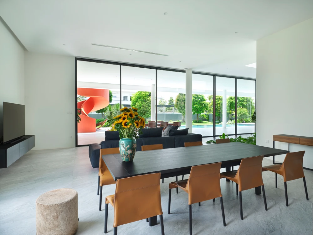 Qua đó, ngôi nhà cùng cảnh quan xung quanh như hòa làm một, tăng thêm tính đồng điệu giữa tổng thể chung.