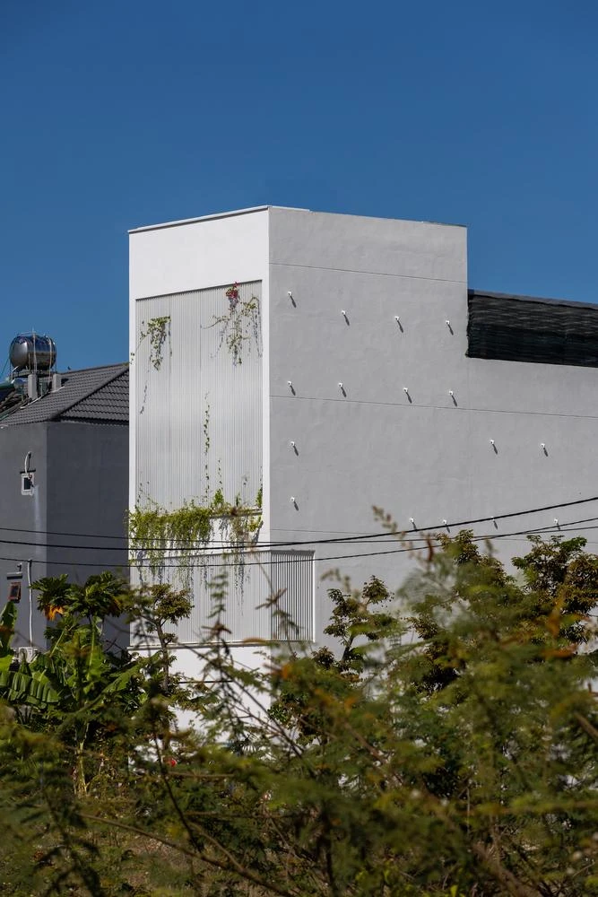 Cây xanh và thanh dọc bằng kim loại ở mặt tiền phía tây bắc và mặt tiền sau đông nam có thể giúp che bớt bức xạ mặt trời gay gắt, tiếng ồn đường phố và khói xe.