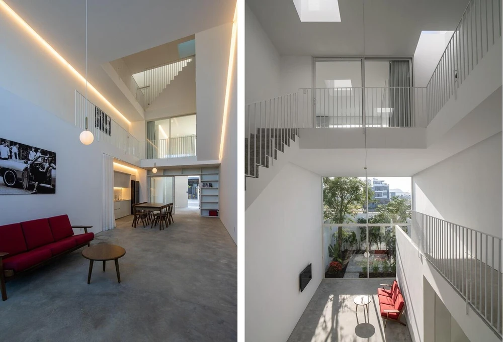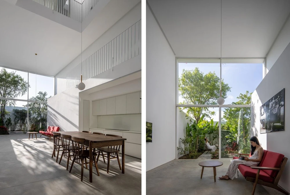 Mọi không gian đều được kết nối và hỗ trợ với ánh sáng ban ngày, không khí trong lành bên ngoài, không gian xanh và thông gió tự nhiên.