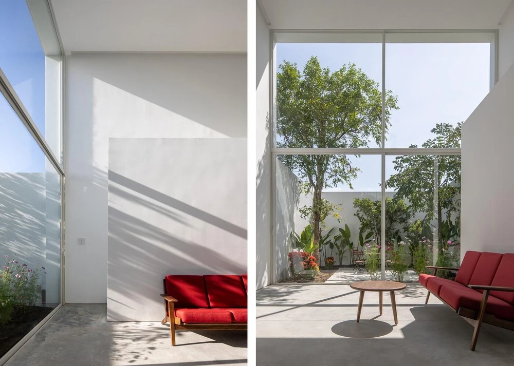 Trong nhà nhưng luôn có sự hiện diện của trăng, ánh sáng mặt trời, không khí trong lành và gió nhẹ.