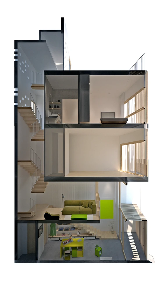 Nano House được xây dựng trên mảnh đất không quá vuông vắn ở TP.HCM. Ngôi nhà có ba tầng với diện tích 4x8m, là tổ ấm của một gia đình trẻ gồm bốn người.