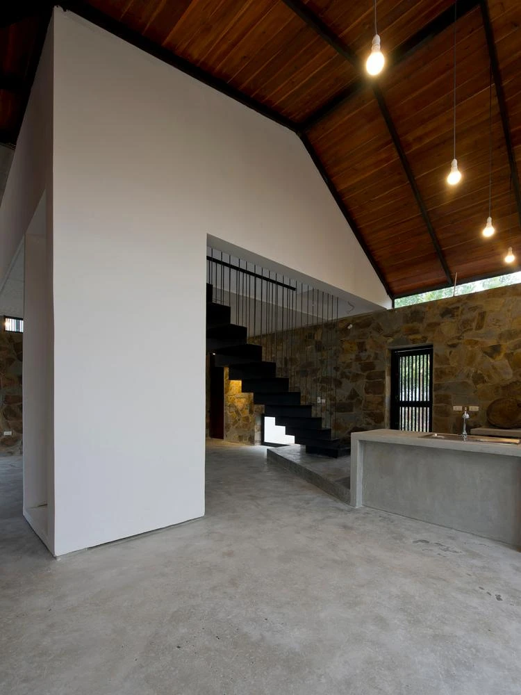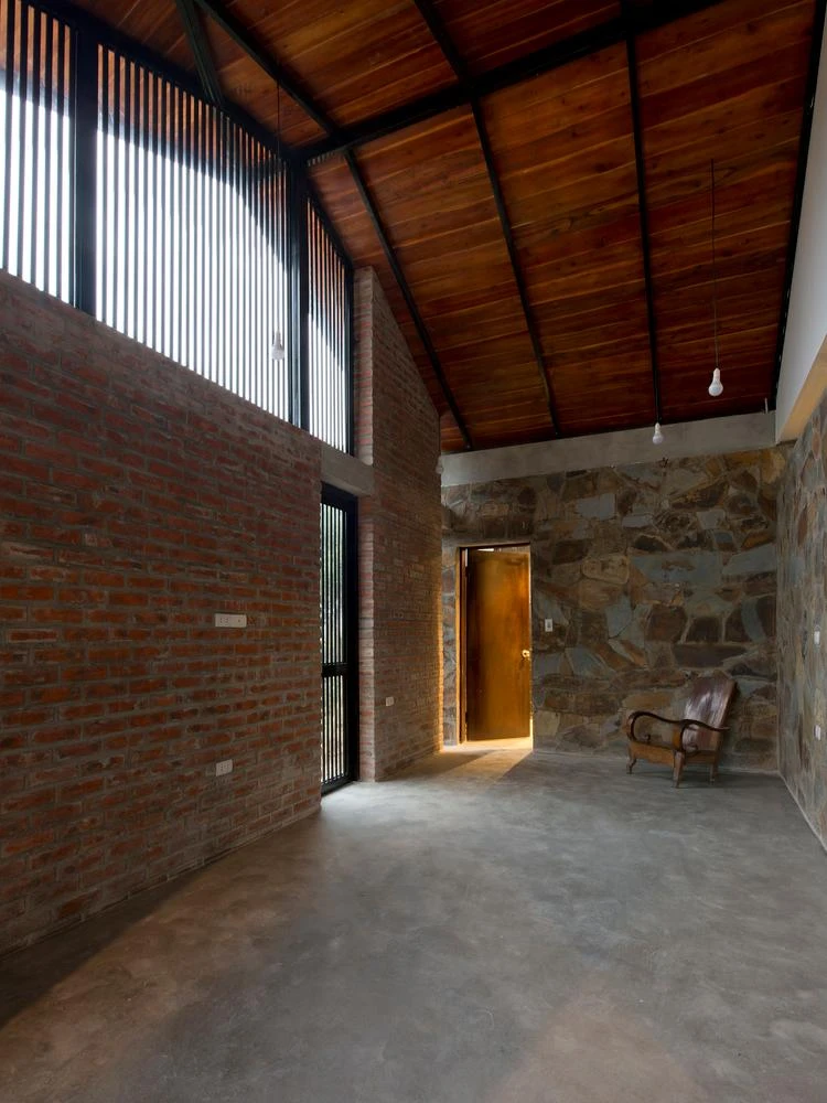 Kiến trúc sư sử dụng vật liệu địa phương như sàn bê tông, gạch thô... tạo cảm giác gần gũi, thân thuộc. |