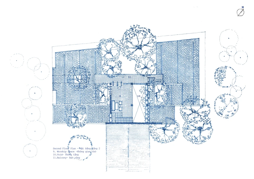 Kiến trúc sư cho biết, năm tiêu chí được đặt ra, bao gồm: kết nối khu nhà ở và khu vực kinh doanh, hồi sinh khu vực bị lãng quên; bảo tồn 11 cây xanh hiện có; không gian truyền thống trong cuộc sống hiện đại; sử dụng các vật liệu lâu năm; cửa và cửa sổ kết nối từ bên trong với bên ngoài.