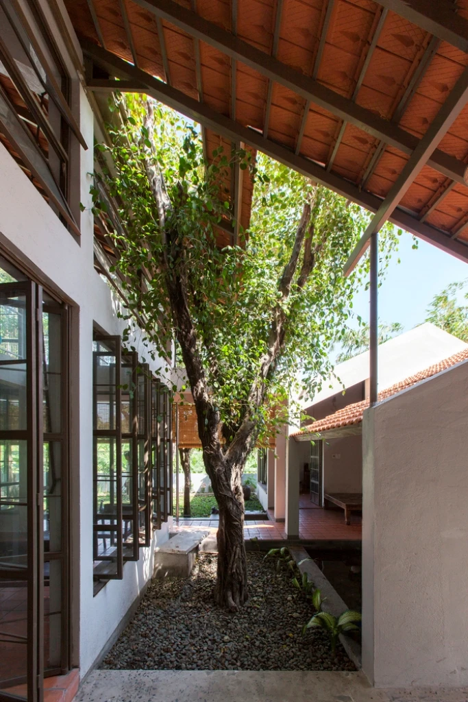 Phòng ngủ cũng được bố trí dưới tán cây 20 năm tuổi, mát mẻ và thoáng đãng.