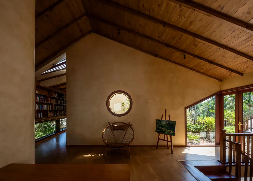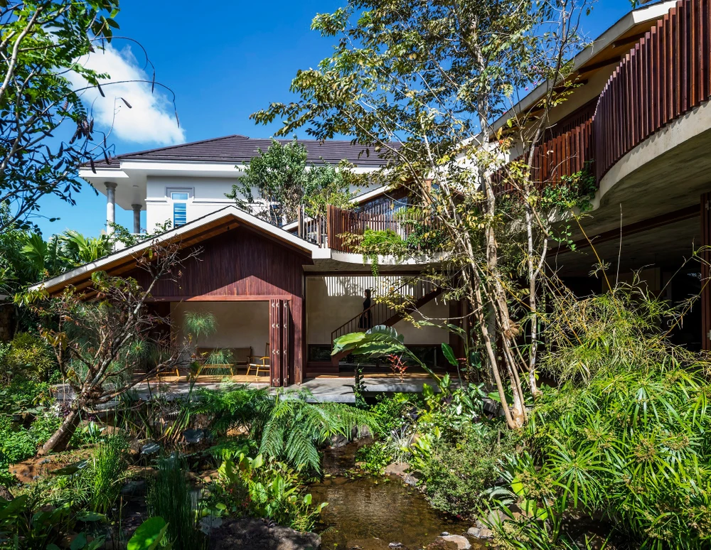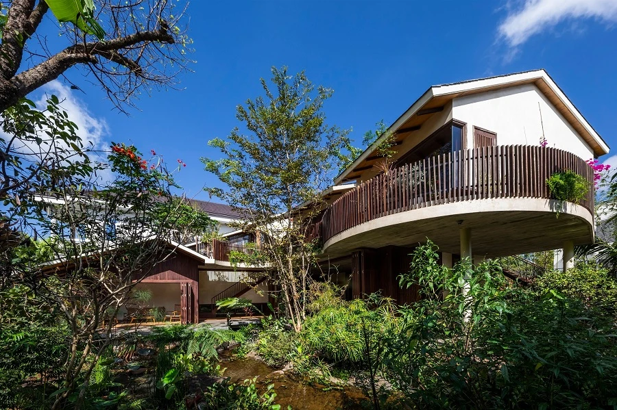 Các ranh giới không gian chức năng gần như xoá mờ. Kiến trúc sư K.A Studio & AD9 architects không phân chia chính phụ, ngôi nhà và khu vườn hay dòng suối. Tất cả đều gắn kết, không tách rời.