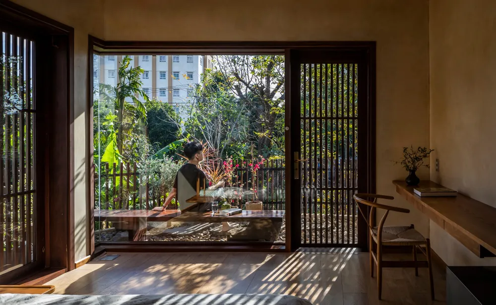 Khu vực phòng khách và sân vườn được kết nối và tương tác với nhau.