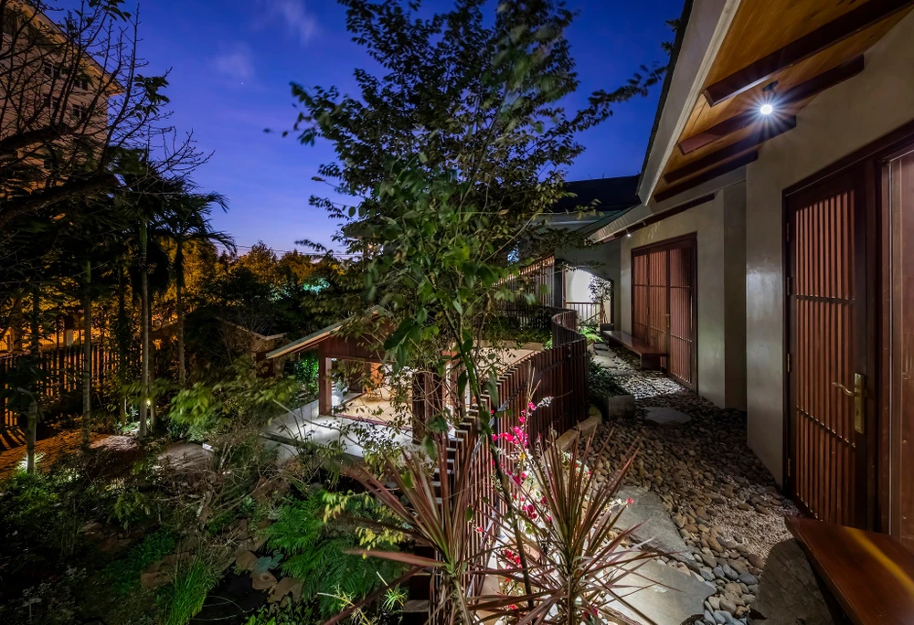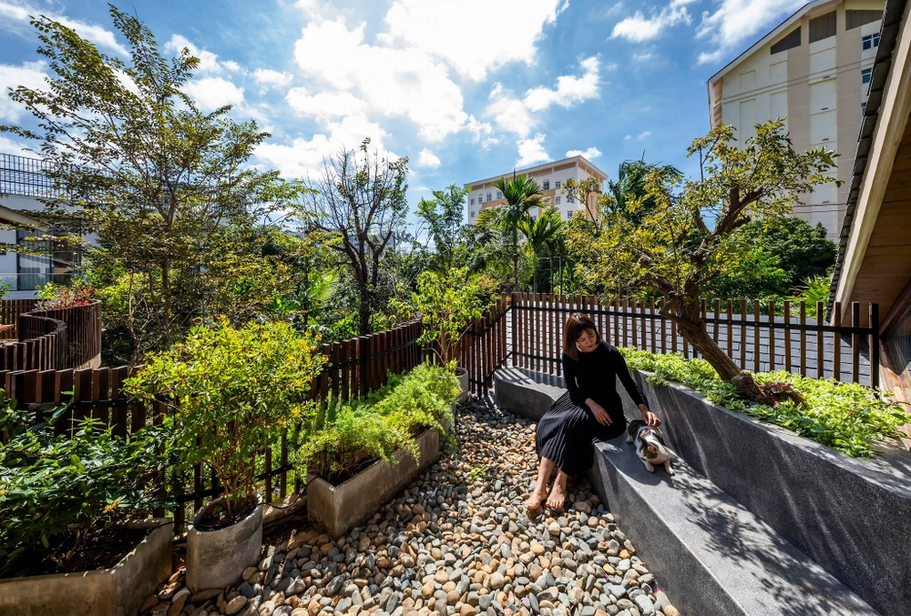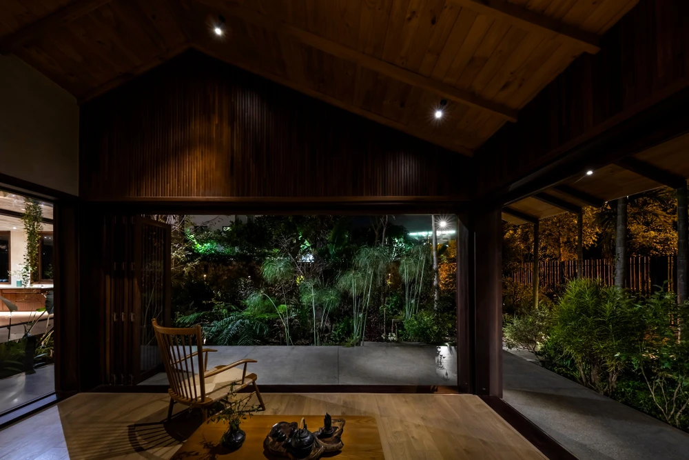 Khoảng cách giữa các không gian chức năng dường như bị xóa mờ bởi cách thiết kế không gian khu vườn, phòng khách và không gian khác gắn kết với nhau.