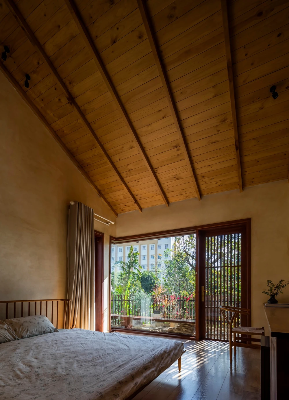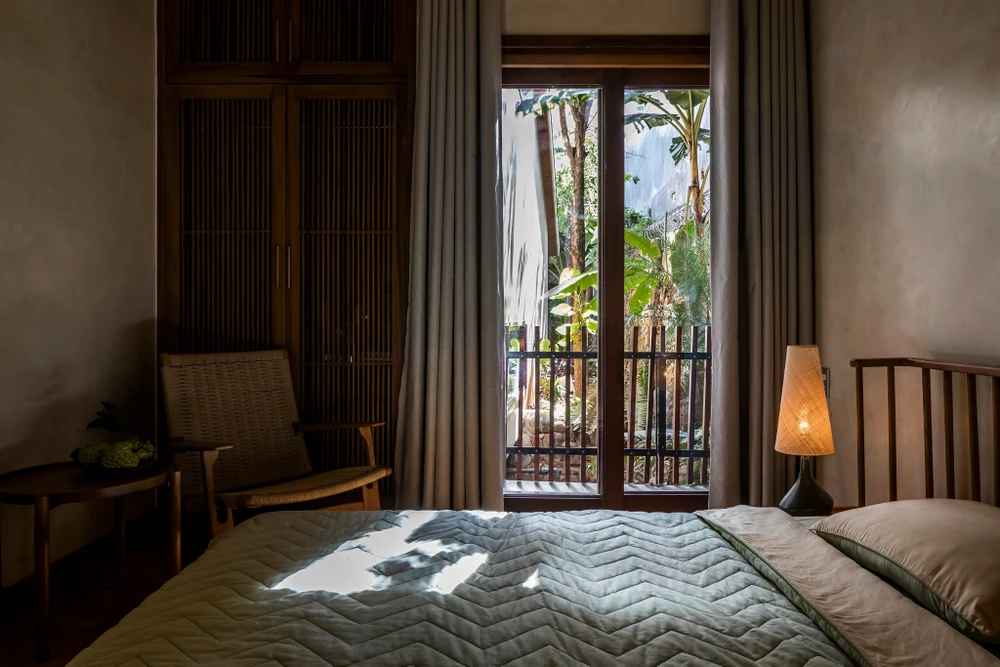 Không gian phòng ngủ hài hòa với thiên nhiên.