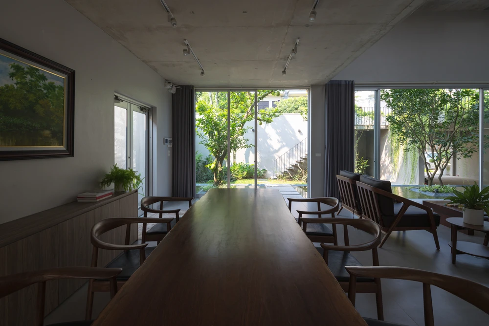 Ngồi trong phòng khách có thể cảm nhận trọn vẹn những khoảnh khắc thay đổi của thiên nhiên và những hoạt động thường ngày của ngôi nhà.