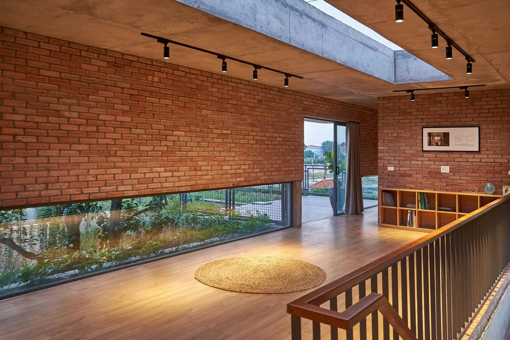 Vật liệu chính trong ngôi nhà là gạch đỏ và bê tông trần tạo cảm giác mộc mạc, gần gũi |