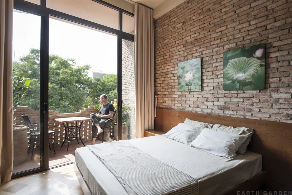 Phòng Earth Garden được thiết kế độc đáo theo phong cách bản địa Việt Nam và có nguồn gốc từ các vật liệu địa phương.