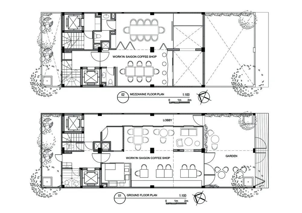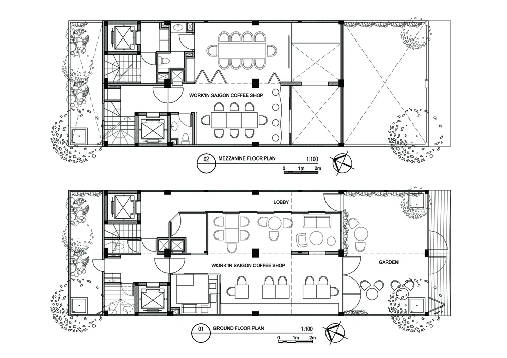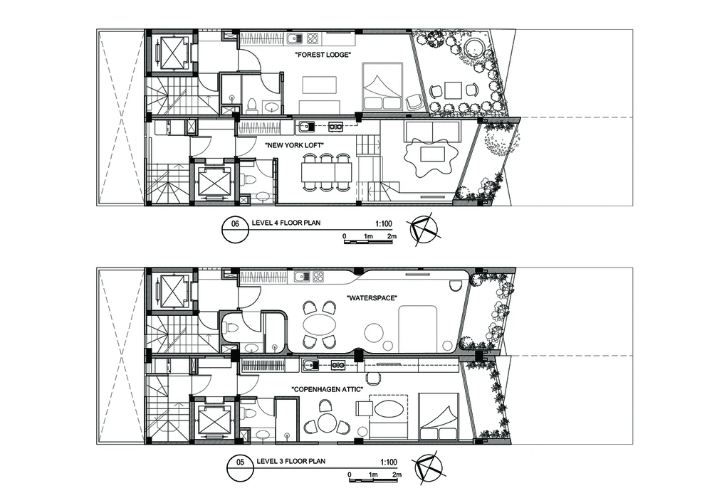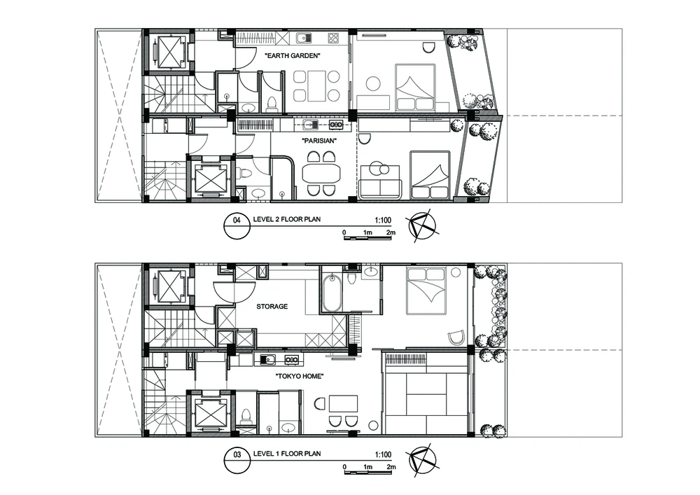 The Cities &Gardens được ghép từ hai lô đất giống hệt nhau diện tích 4 x 22 m, mỗi lô với tầm nhìn ra một công viên nhỏ.