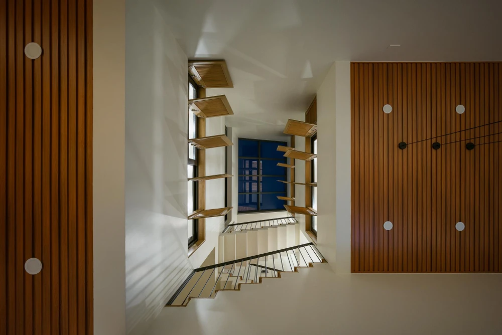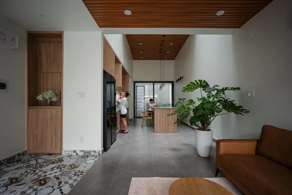 Giếng trời giúp tăng cường chiếu sáng tự nhiên cho mọi không gian và tạo sự kết nối giữa các thành viên trong gia đình khi đứng ở bất kỳ không gian nào.
