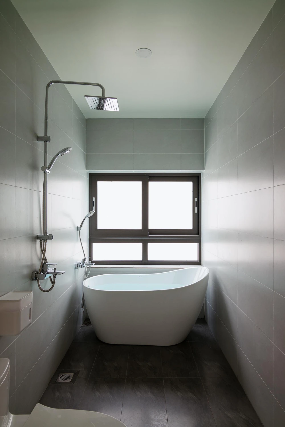 Phần lõi thang và không gian phụ được đặt gọn về một phía, phần không gian sử dụng còn lại được thông suốt từ trước ra sau.