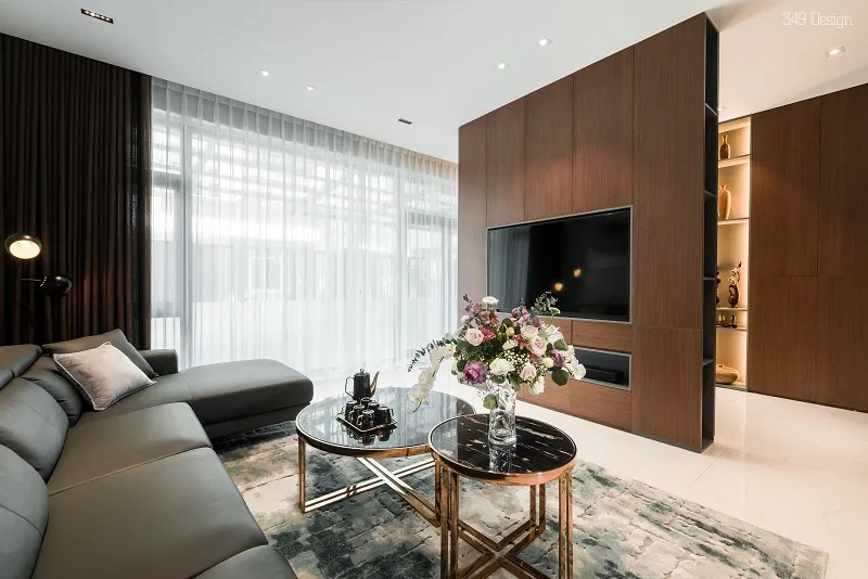 Tông màu nội thất chủ đạo cho thiết kế là gam màu trung tính kết hợp với màu nâu gỗ.