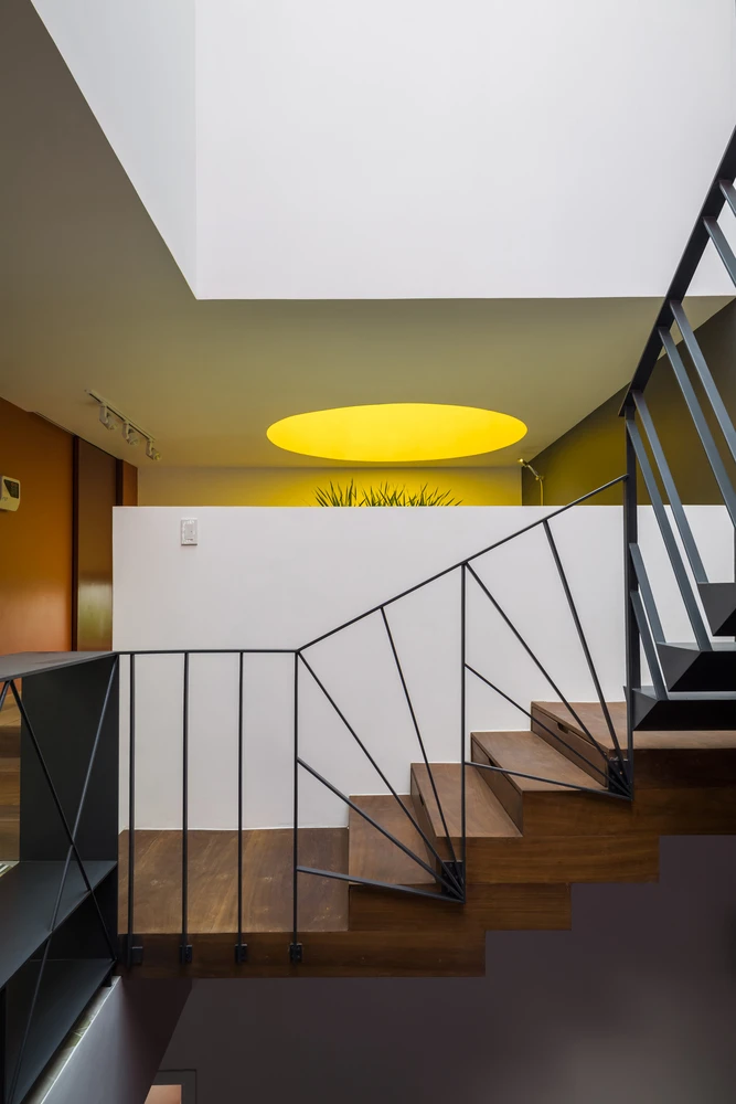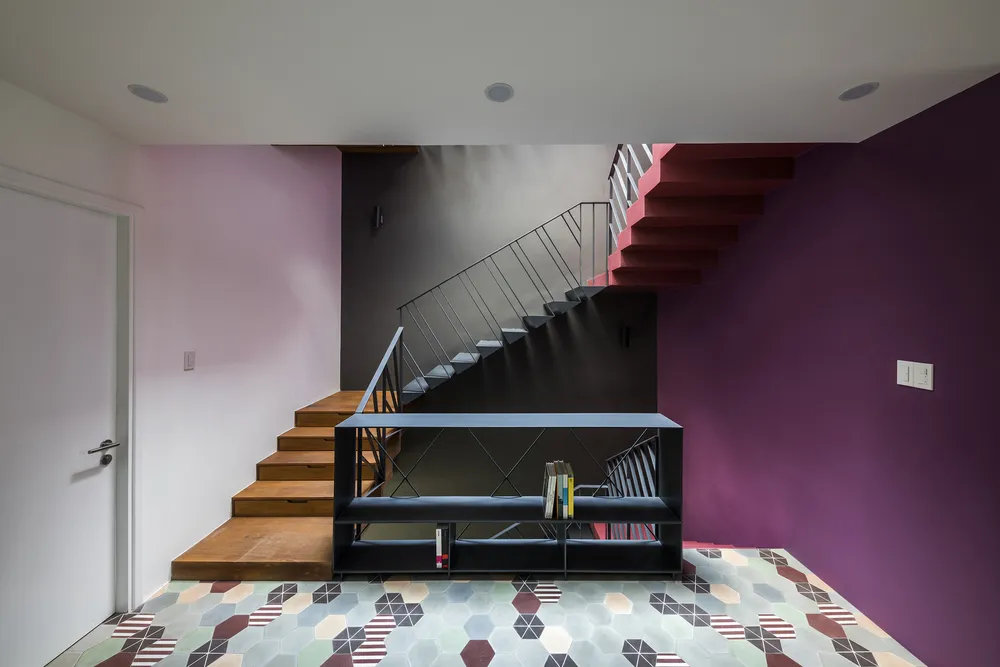 Kiến trúc sư cũng chia cầu thang thành nhiều phần với các màu sắc khác nhau, giúp tạo thêm sự sinh động cho ngôi nhà.
