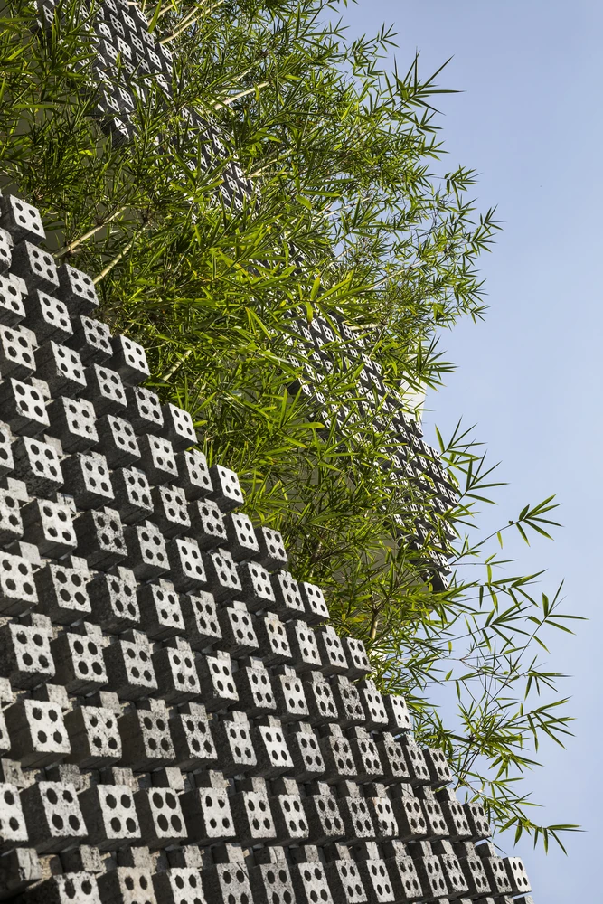 Kiến trúc sư Phạm Thị Mỹ An ( MM++ Architects) lấy cảm hứng thiết kế từ các công trình kiến trúc cổ ở Việt Nam. Kiến trúc sư đã kết hợp giữa gạch và những khối xi măng để tạo nên những họa tiết độc đáo, sinh động cho mặt tiền nhà.