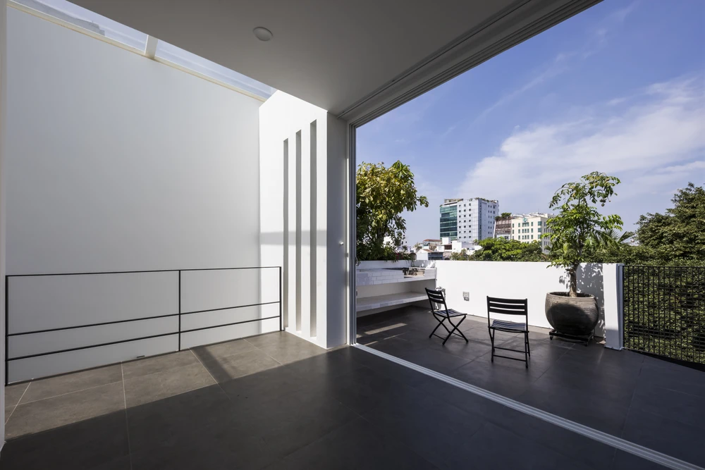 Tầng thượng được tận dụng làm khu vực kho chứa đồ. Kiến trúc sư chừa một khoảng không gian rộng mát ngoài trời để gia đình có thể cùng nhau sinh hoạt chung, hóng mát hay thư giãn mỗi khi rảnh rỗi.