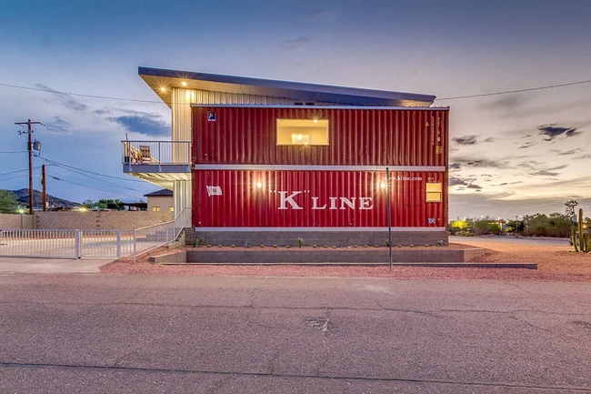 Chỉ nhìn từ phía bên hông mới dễ dàng nhận ra chất liệu ngôi nhà tạo thành từ những chiếc thùng container.
