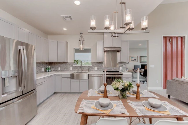 Một góc chụp khác của nhà bếp cho thấy nội thất nhà bếp khá đầy đủ tiện nghi. Bên cạnh đó, có thể dễ dàng đánh giá óc thẩm mỹ trong cách chọn gam màu cũng như cách sắp xếp đồ đạc của chủ nhân thật tinh tế.