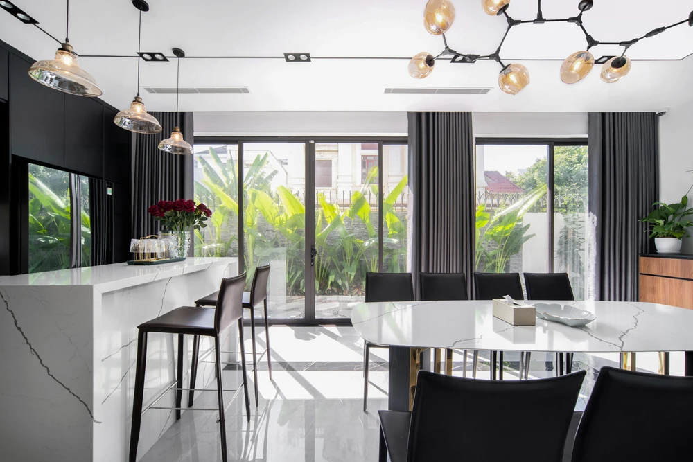 Liên thông với phòng khách là khu vực ăn uống và bếp nấu.