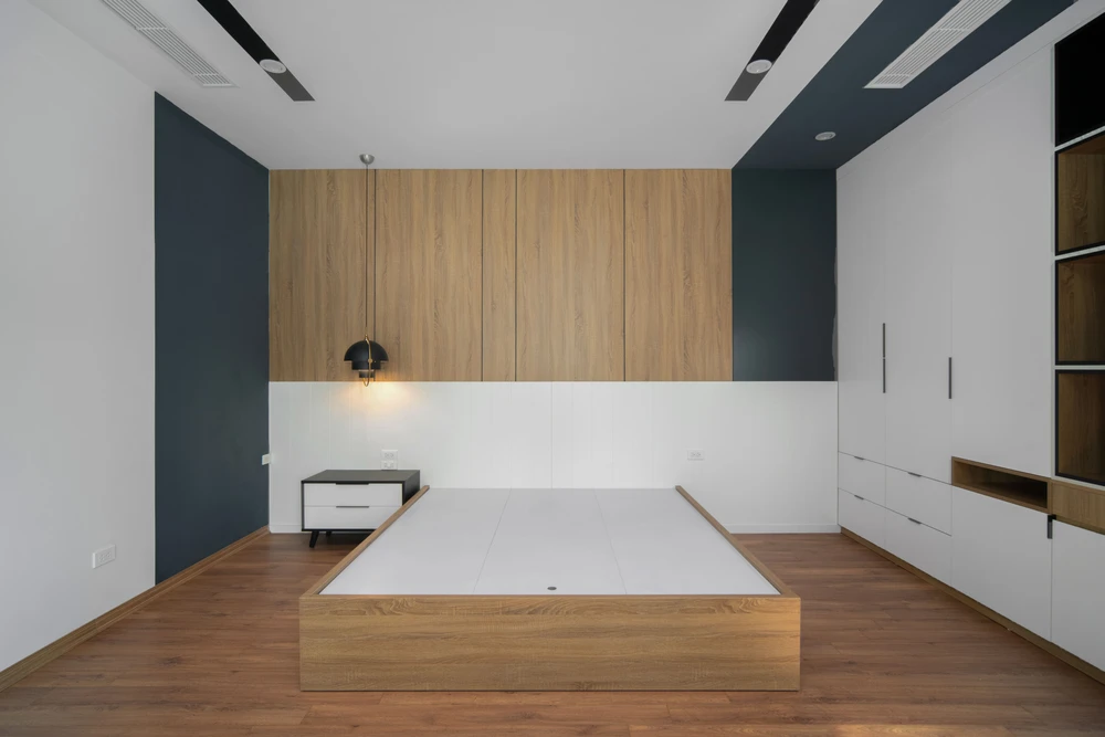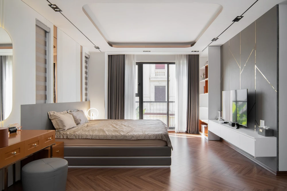 Phòng ngủ master của hai vợ chồng được bố trí đơn giản.