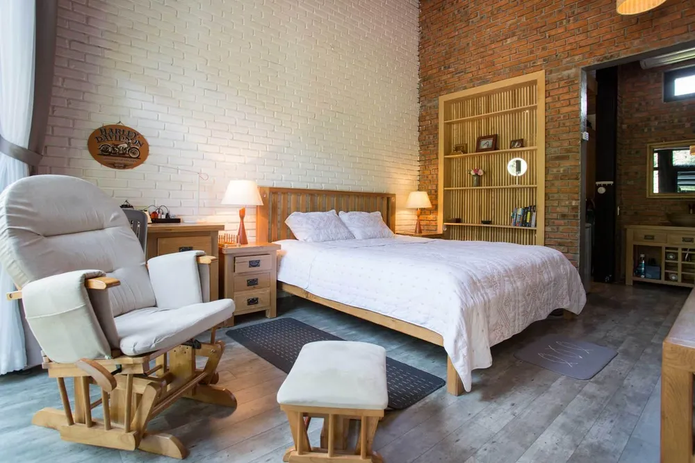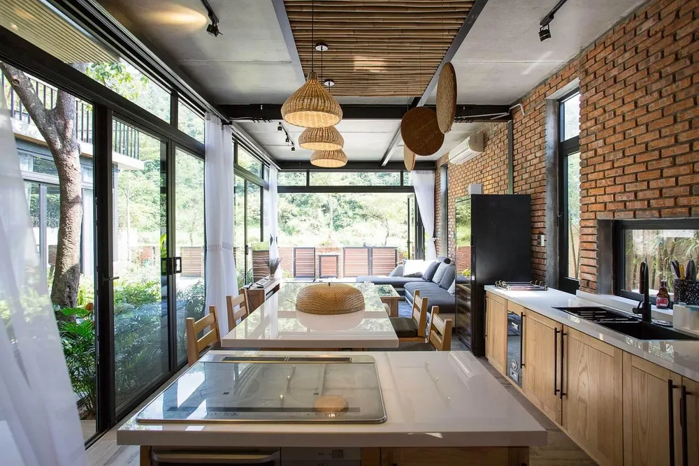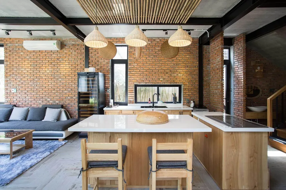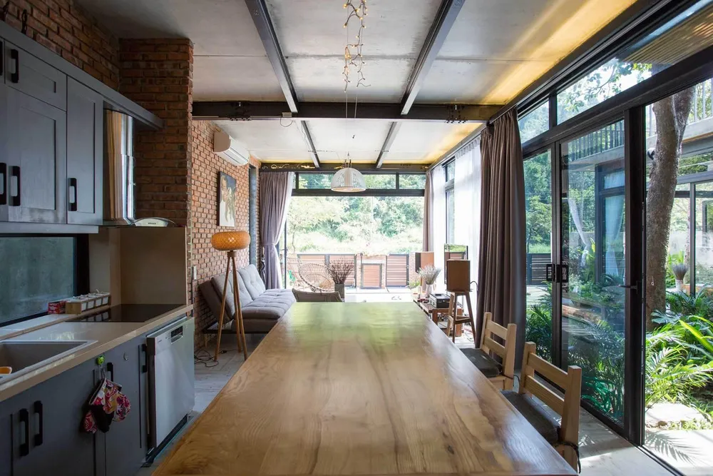 Đồ nội thất chủ yếu sử dụng bằng chất liệu gỗ tự nhiên, gần gũi hài hòa với thiên nhiên. Kiến trúc sư lựa chọn nội thất một cách linh hoạt.