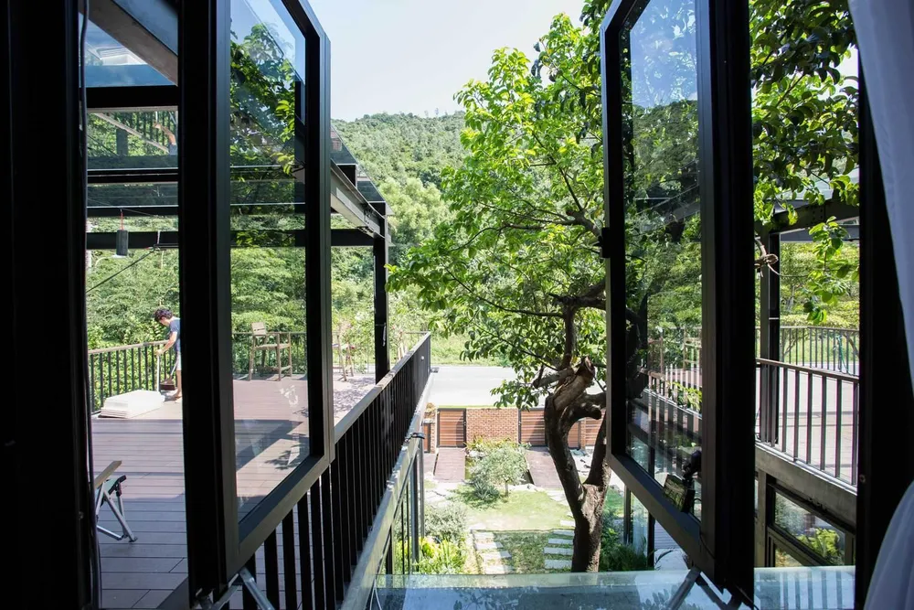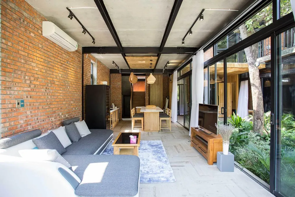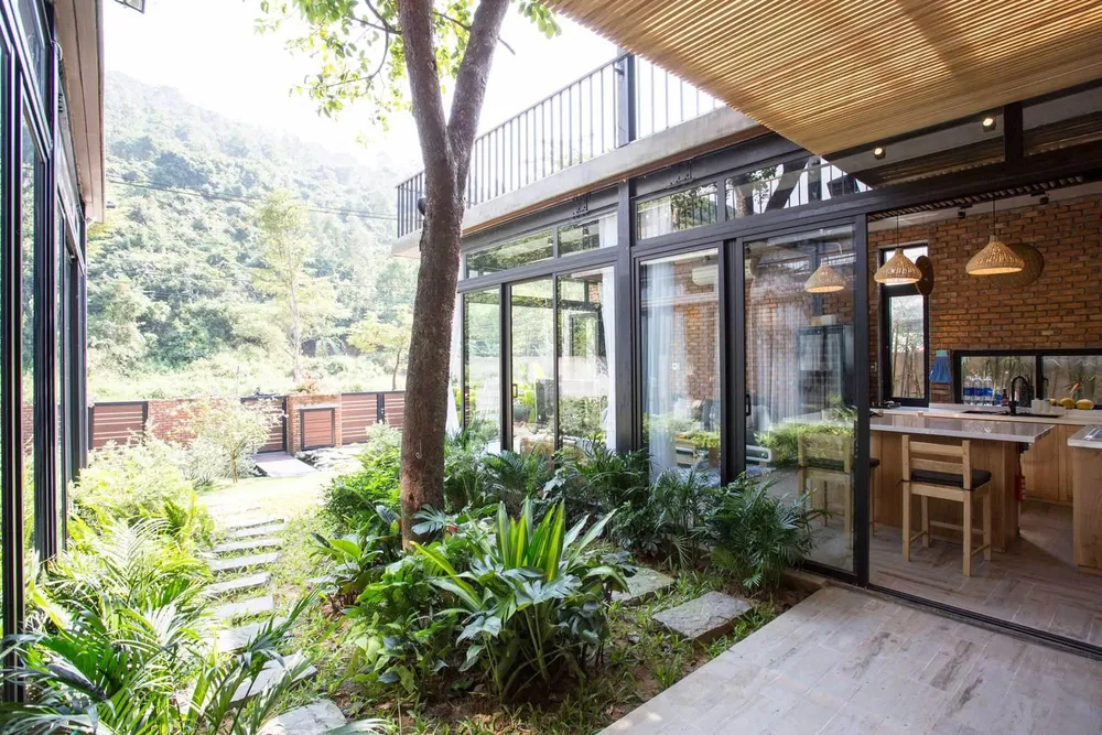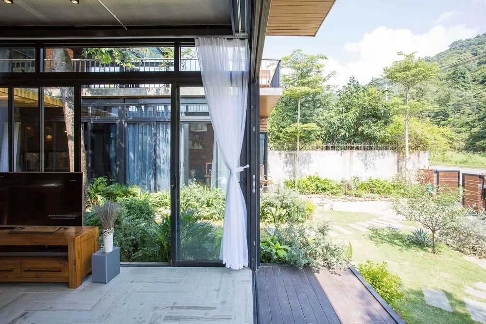 Khi cửa kính được mở hết, khu vực trong nhà và khu sân vườn hòa quyện vào nhau.