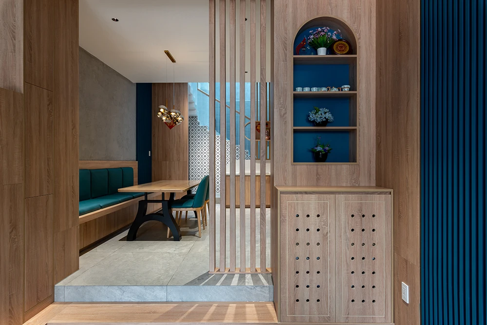 Dự án Nhà Xanh Lơ được xây dựng ở quận 8, TP.HCM. Ngôi nhà là tổ ấm của đôi vợ chồng trẻ và cậu con trai với diện tích khoảng 61 m2.