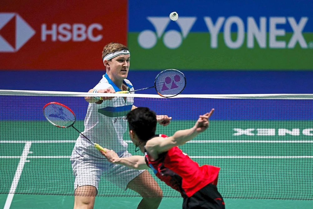 Trận chung kết, Lee Zii Jia (áo đỏ) đã đánh bại Viktor Axelsen 2-1. Ảnh: AFP.