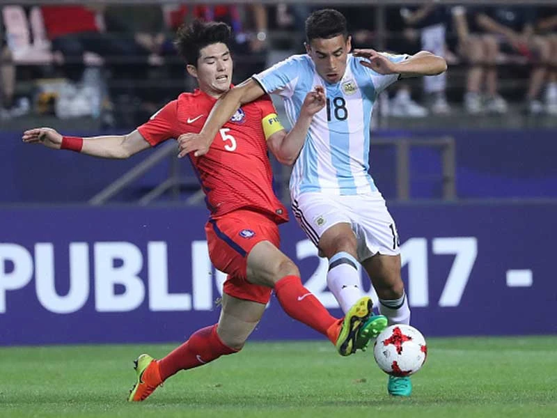 Lee Sang Min mới 19 tuổi góp công lớn trong việc vô hiệu hóa hàng thủ U-20 Argentina. Anh được AFC đánh giá rất cao, là một trong những cầu thủ triển vọng của bóng đá châu Á. Ảnh: AFC NEWS