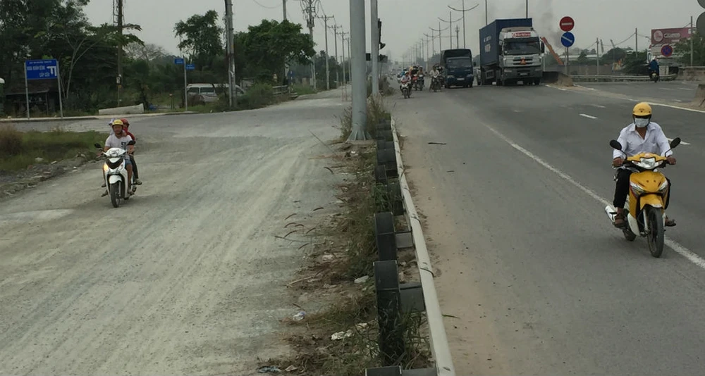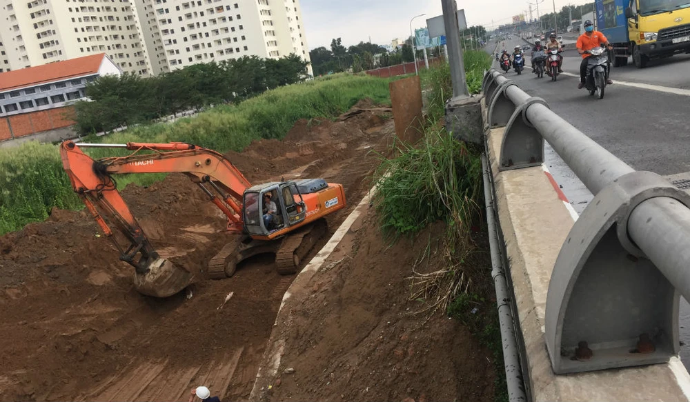 Nhiều điểm tiếp giáp giữa đường gom và đường chính vẫn chưa được thi công liền lạc