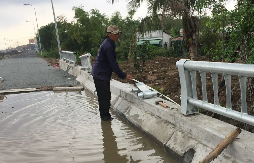 Nhiều cầu bản và cống hộp đã xong đang được lắp lan can