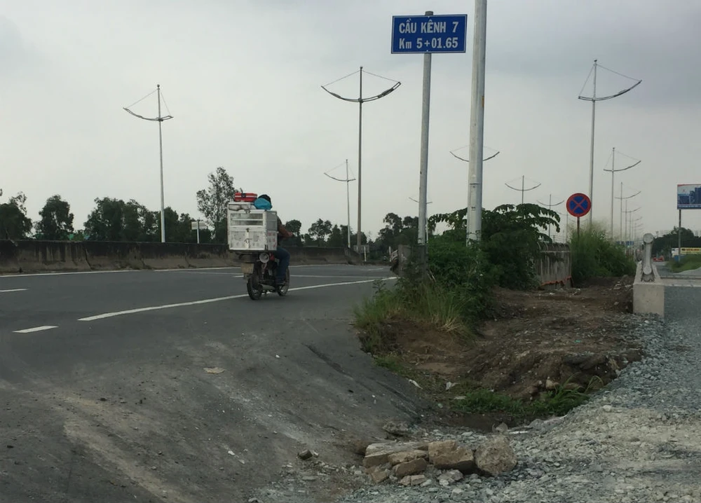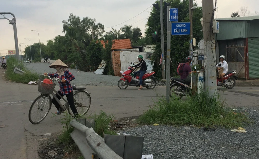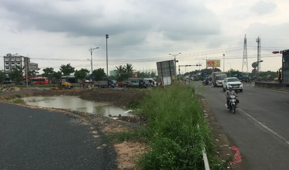 Khu vực nút giao Trần Văn Giàu - Võ Trần Chí vẫn còn nhiều hố vũng xung quanh, chưa hình thành nên các tiểu đảo, vườn hoa ở các nhánh rẽ phải